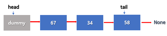 # head가 가리키는 부분이 데이터를 담고 있지 않은 Node(None) 임을 확인하자