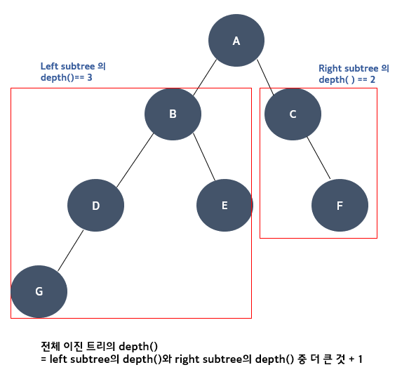 2. depth() - 현재 트리의 깊이 (또는 높이, height)를 구한다.