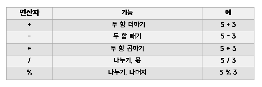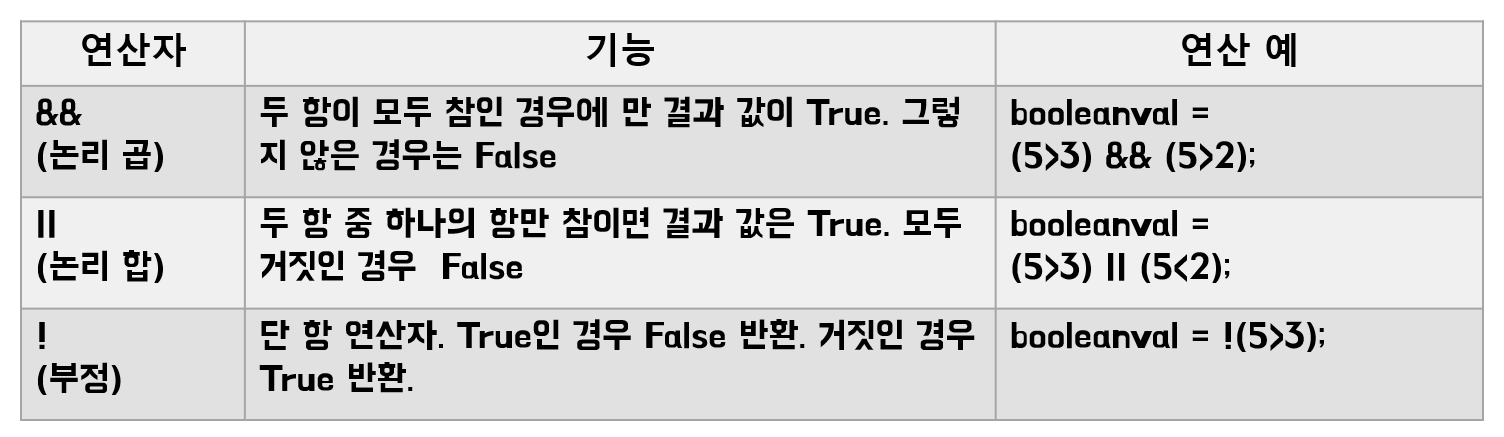 - 산술, 비교, 논리, 대입 연산자 순으로 우선순위를 갖는다.