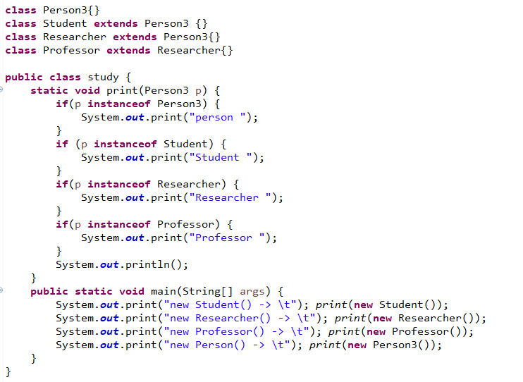 - 즉, (1) 자기 자신의 클래스 객체인가? (2) 자식 클래스의 객체인가? 확인하기 위해 사용한다.