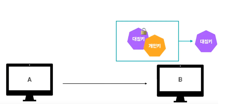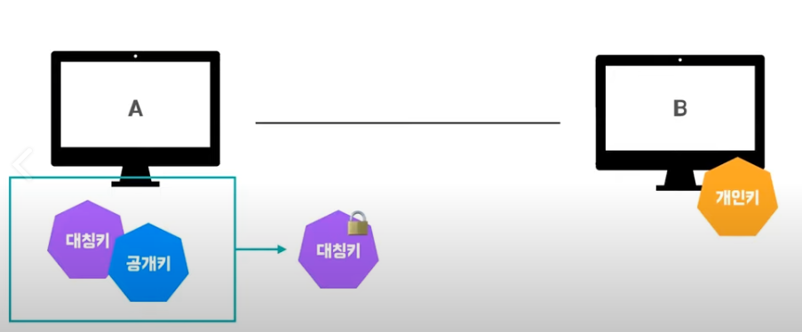 4. 이렇게 암호화한 자신의 대칭 키를 B에게 전달한다.
