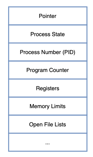 - PCB Pointer : 준비중인 다음 프로세스의 주소를 가리킨다. 준비 상태나, 대기 상태의 큐를 구현할 때 다음을 가리키는 포인터로 사용된다