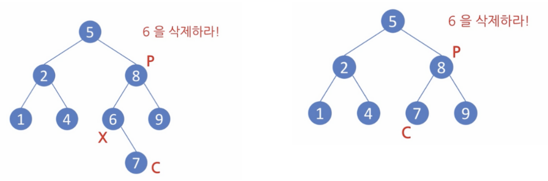 삭제되는 노드 자리에 해당 노드의 자식 노드를 대신 배치한다.