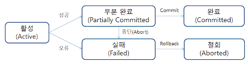 3. 철회(Aborted): 트랜잭션이 비정상적으로 종료되어 Rollback 연산을 수행한 상태