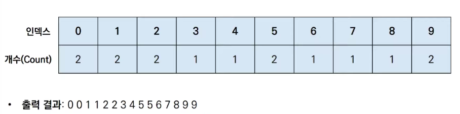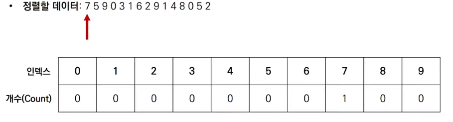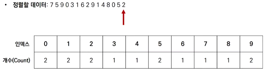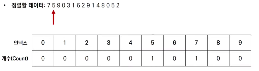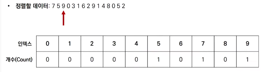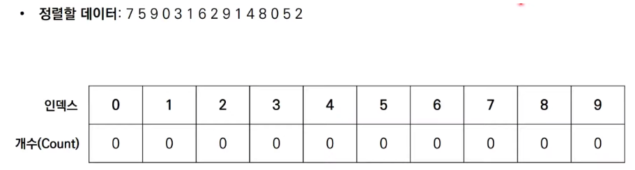 계수 정렬은 선택, 삽입, 퀵 등의 정렬과 달리 데이터를 비교하며 위치를 변경하는 비교기반의 정렬 알고리즘이 아니다.
