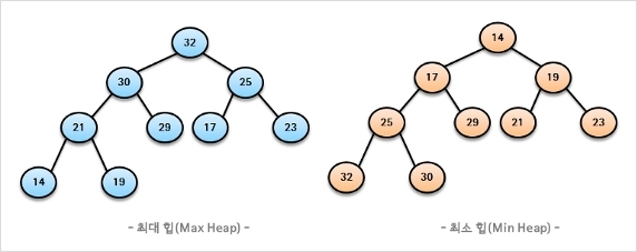 부모 노드이 키 값이 자식 노드의 키 값보다 크거나 같은 완전 이진 트리이다.